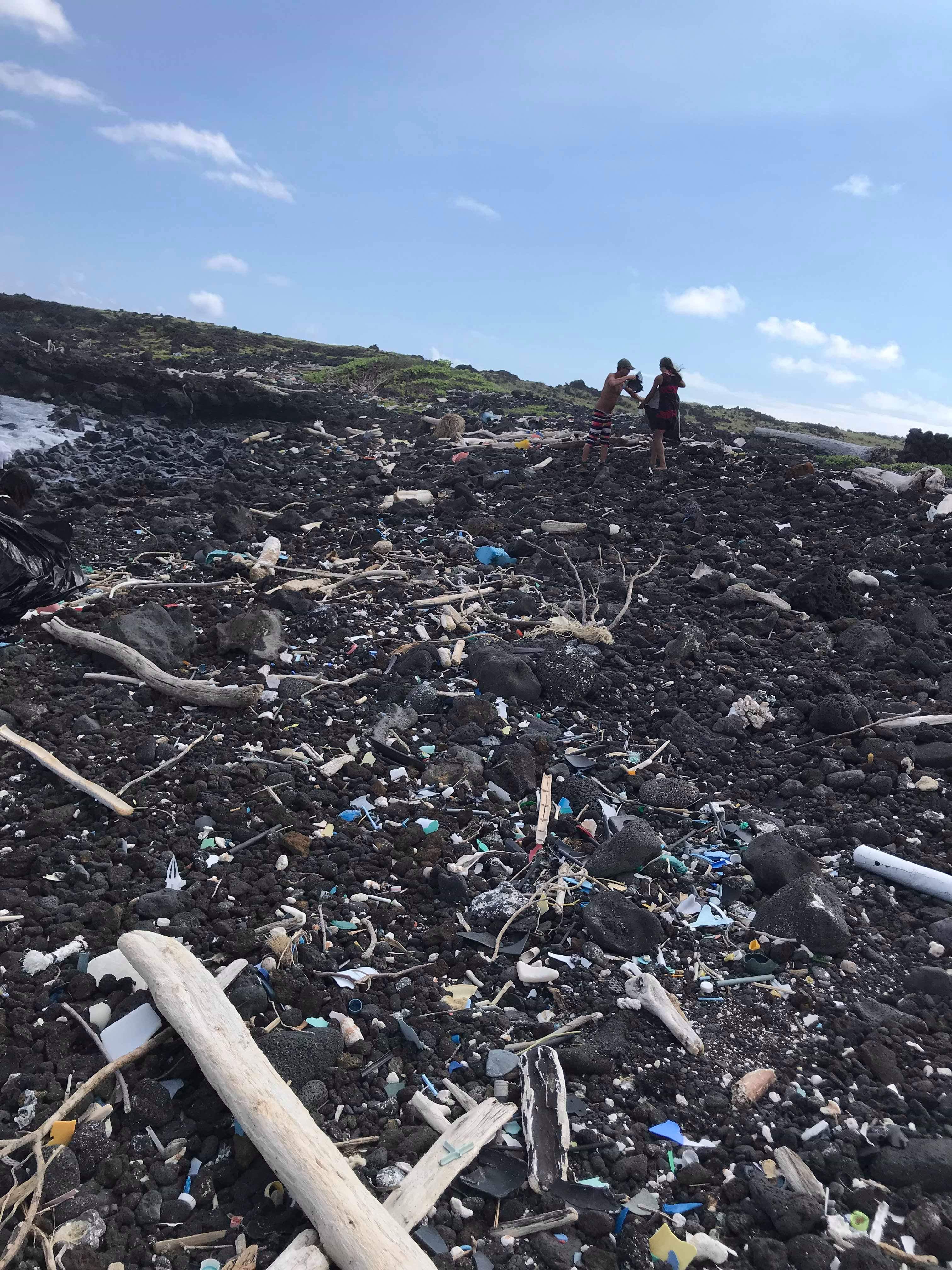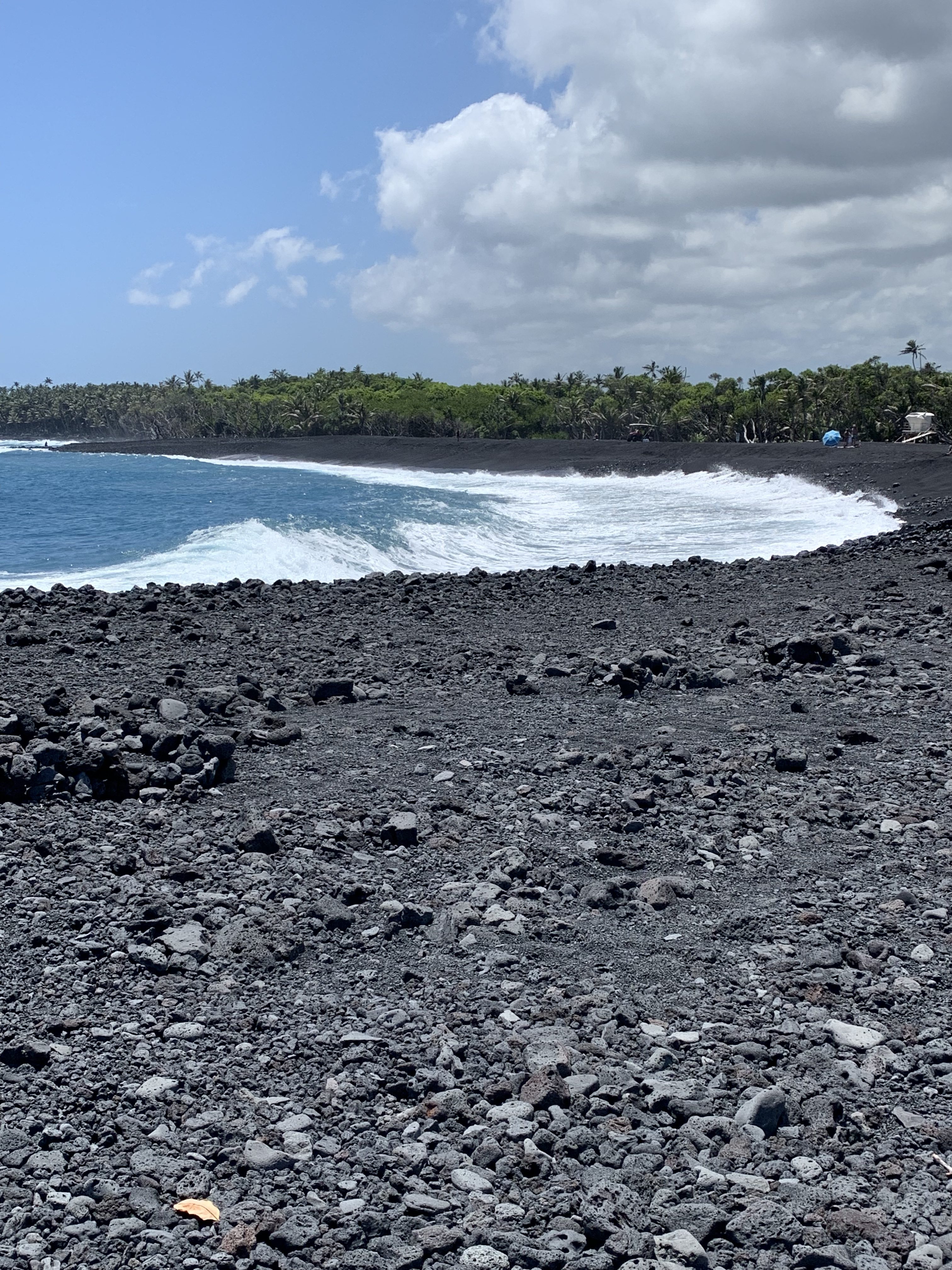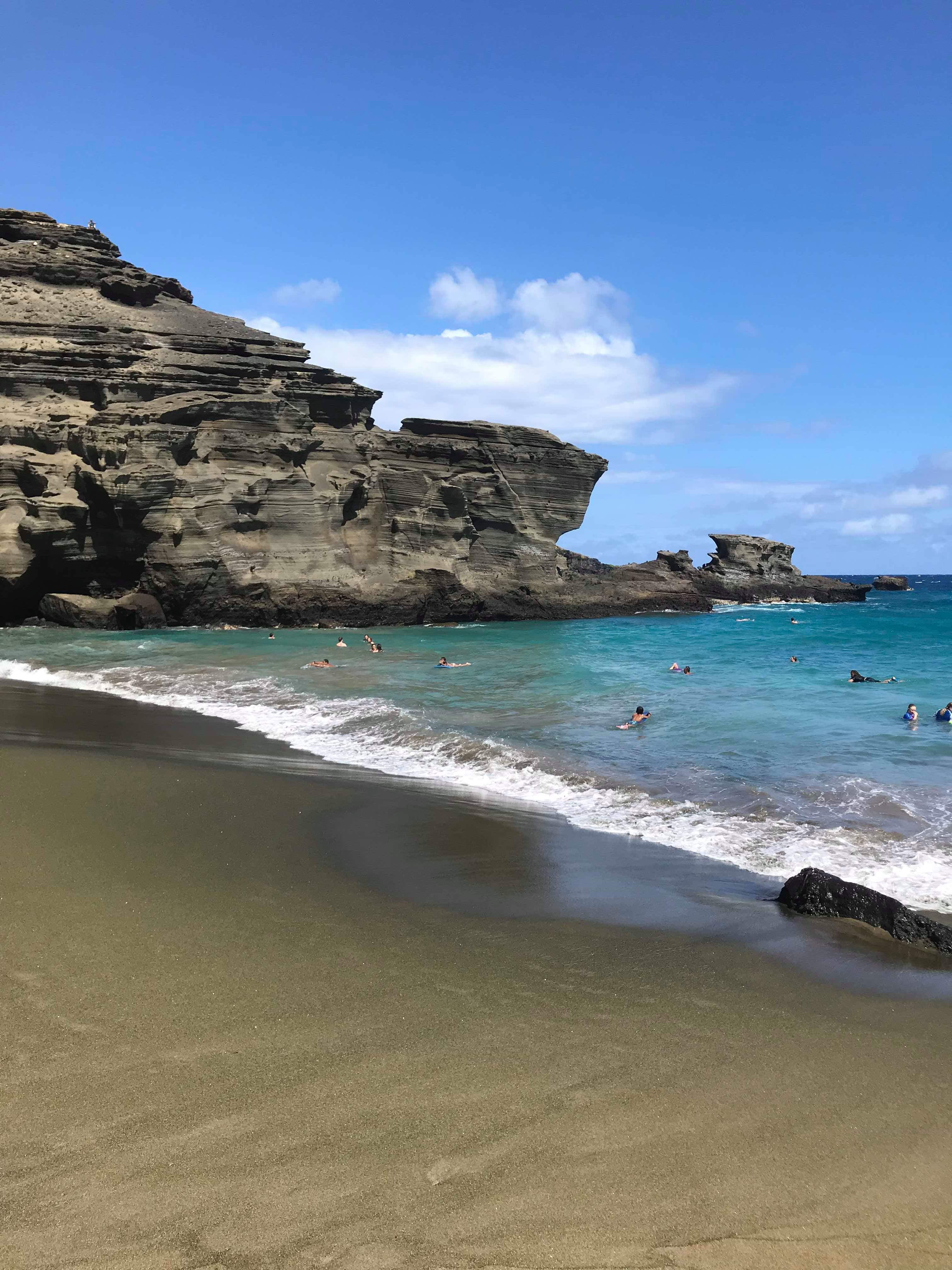 ゴミを拾うのはペリドットの砂浜、グリーンサンドビーチという美しい浜の近くです。そもそも、噴火の時に流れ出て、冷えて固まった溶岩の中にペリドットが含まれていて、それが海の波に洗われ、砕けます。比重の差でペリドットが先に沈み、かたまっているのがグリーンサンドビーチ。残った溶岩だけが集まったブラックサンドビーチというのもあるのです。