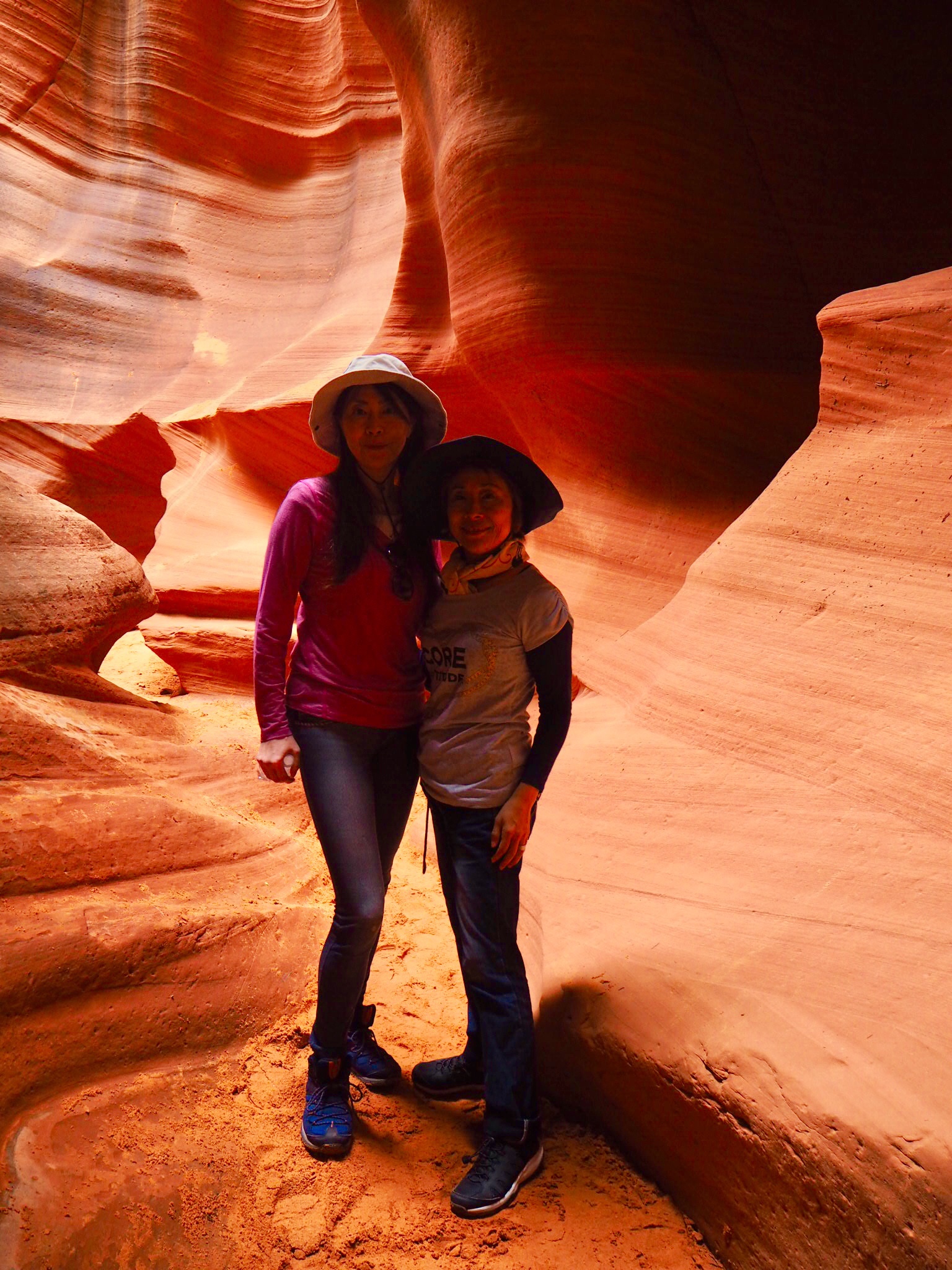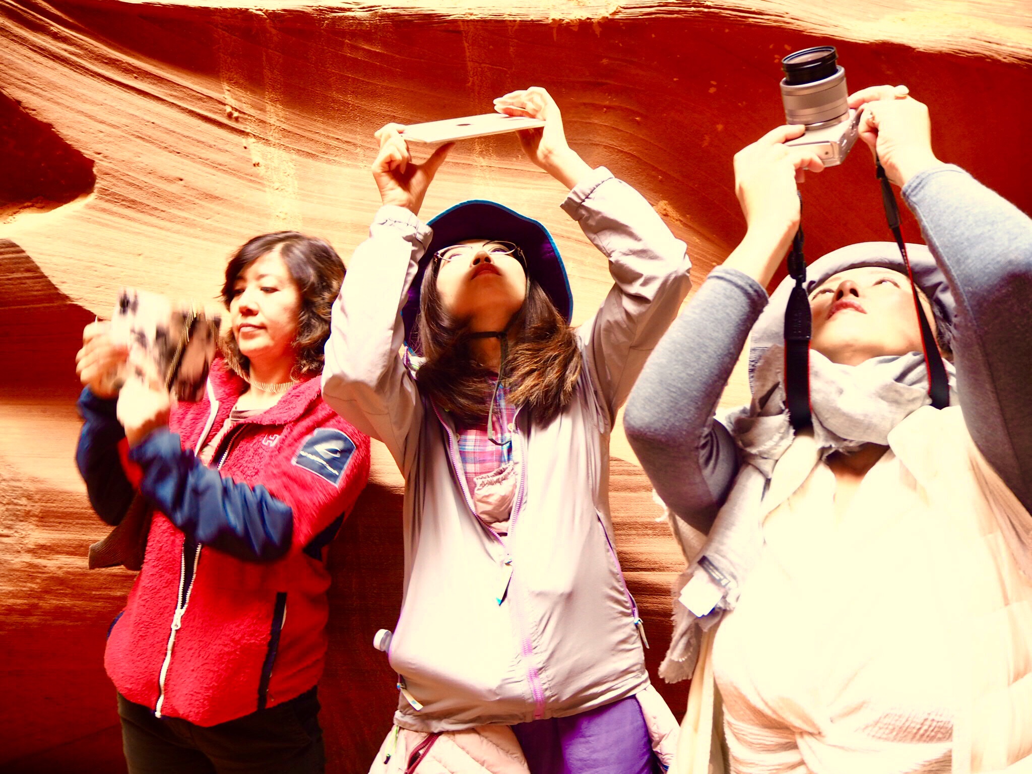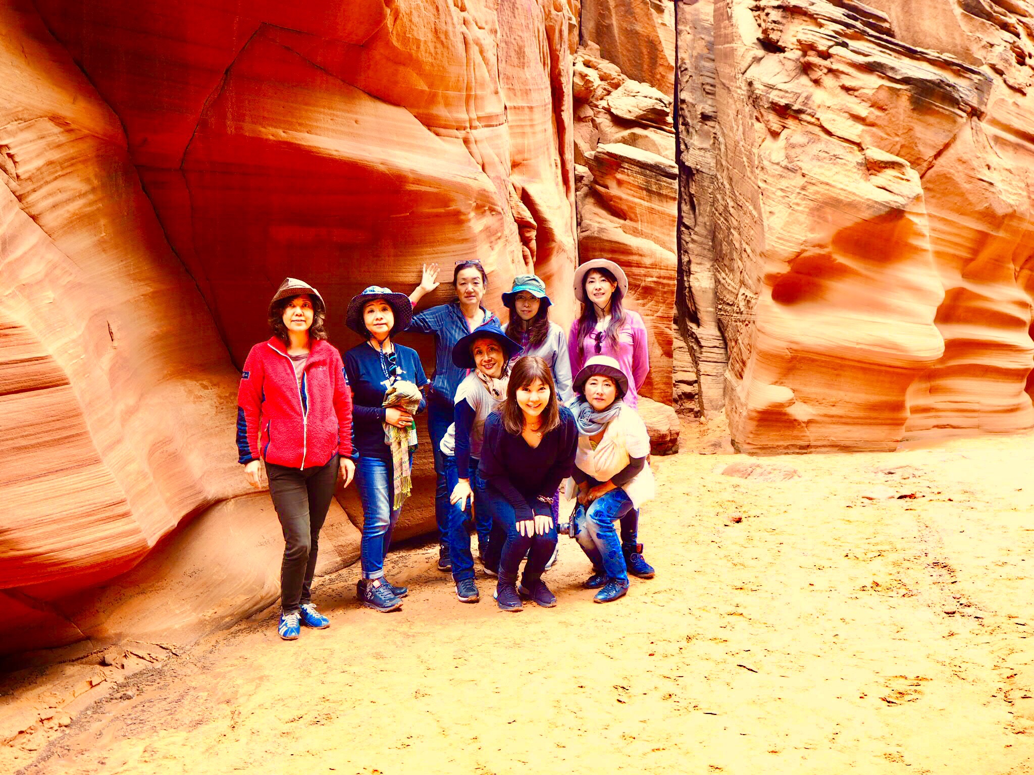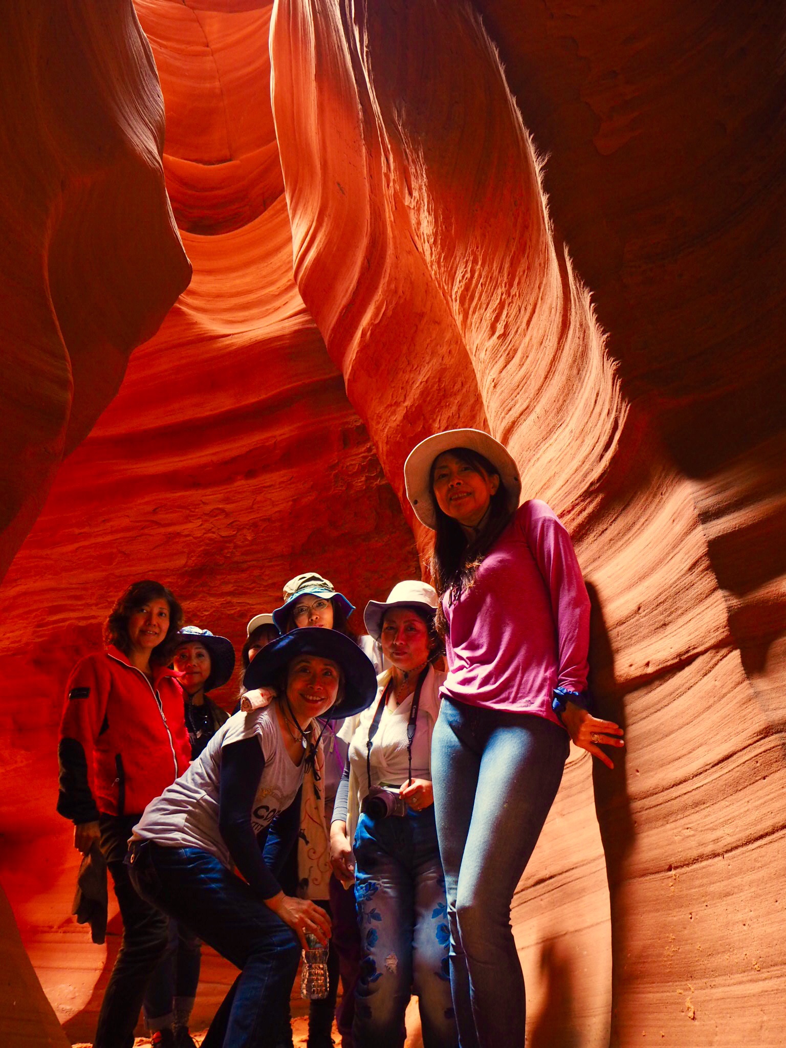 そして、今回はアンテロープキャニオンX というまだ日本の方は行く人が少ないと言われているほうへ訪れました。こちらはまだ人が少ないので、途中で写真撮影に立ち止まるような余裕が全然あるのです。アンテロープキャニオンには、アッパーキャニオン、ローアーキャニオンとこのキャニオンXという三箇所の場所があります。