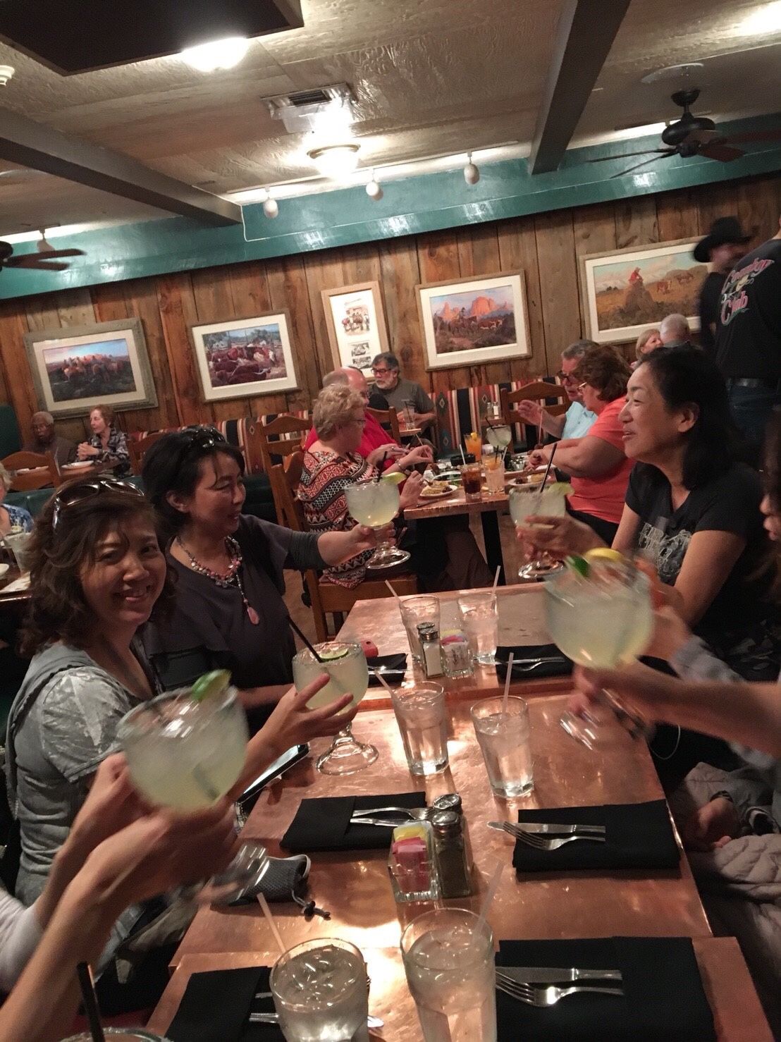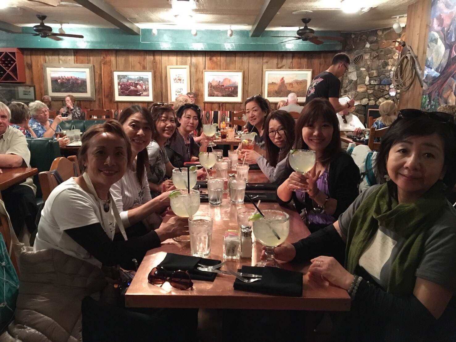 昨日のランチショックからリベンジでちゃんとしたレストランへ。隣のおじさまが大きな美味しそうなマルガリータを飲んでいらしたので、ほぼ全員それをオーダー。