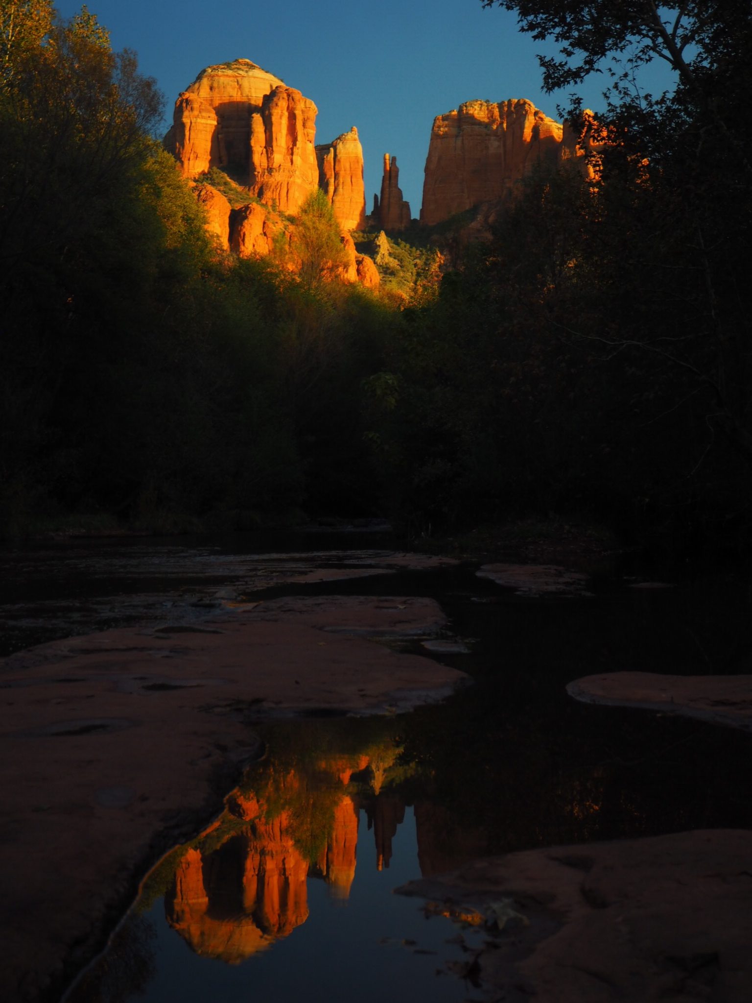 第1位:夕日に燃えるカセドラルロックが映る水鏡からの