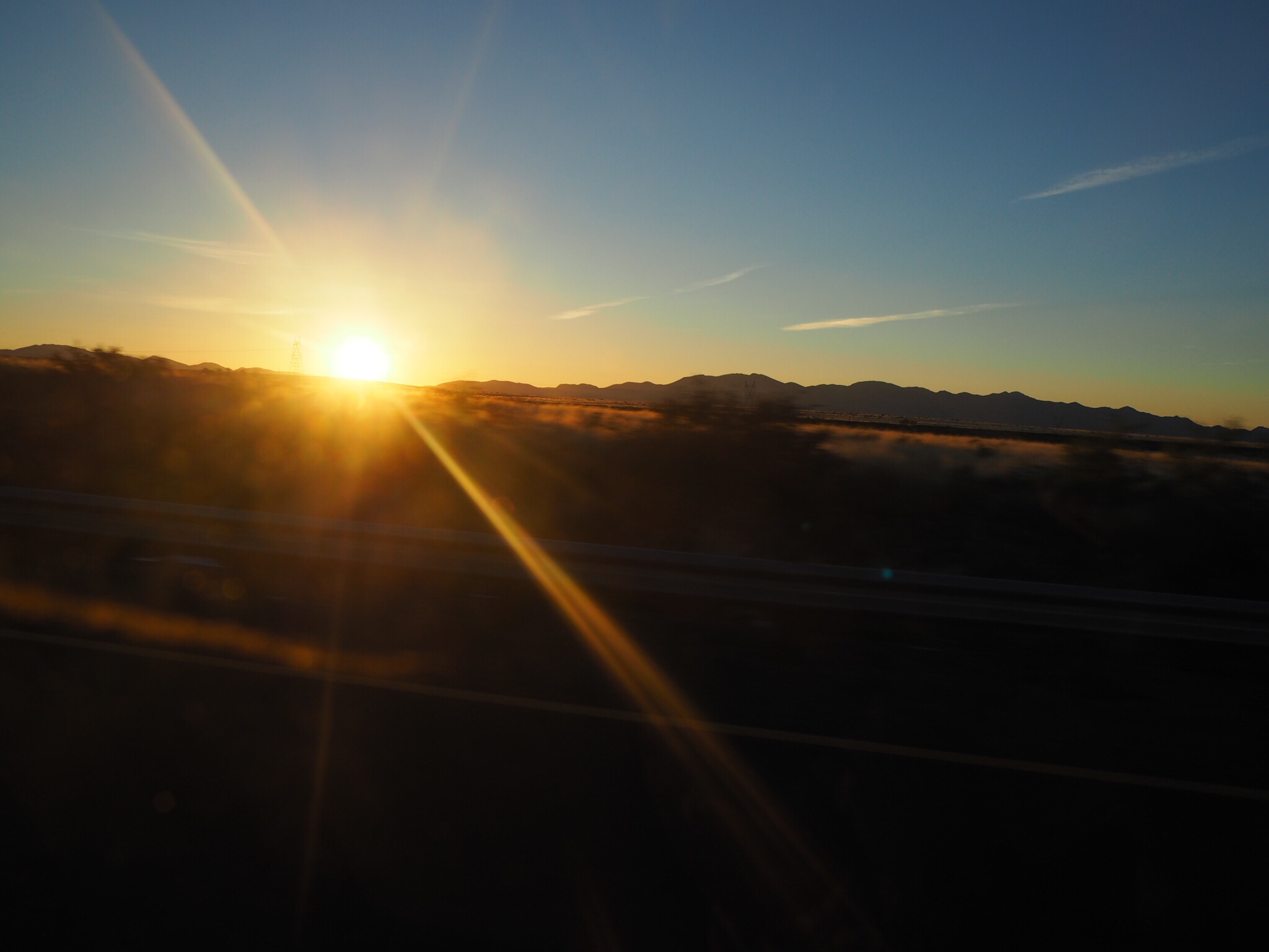 フェニックスに向かう車の中でみた最後の朝日。綺麗でしたね。本当にこの5日間、美しい景色をたくさんみせていただきました。自然を満喫して、仕事のこととか本当に忘れて、よく歩きましたね。