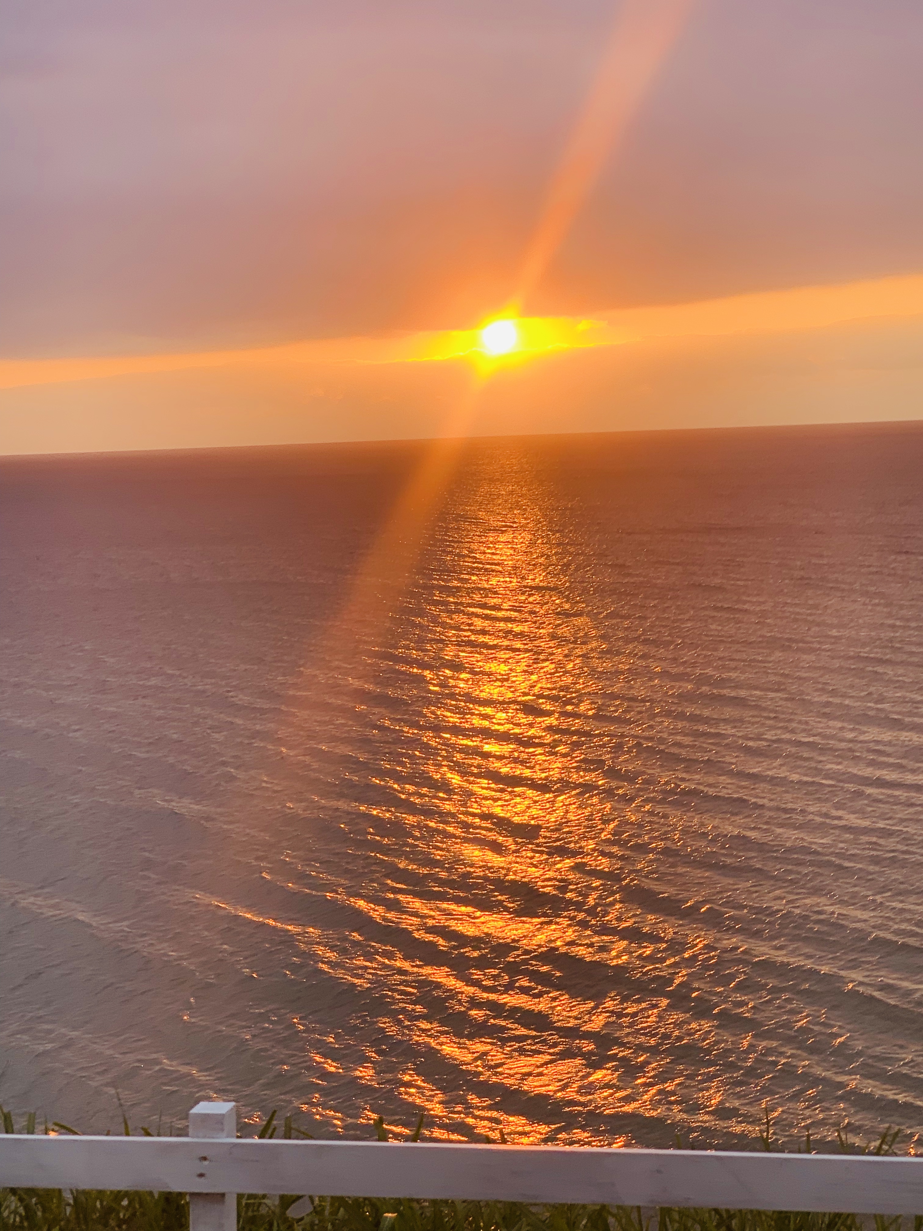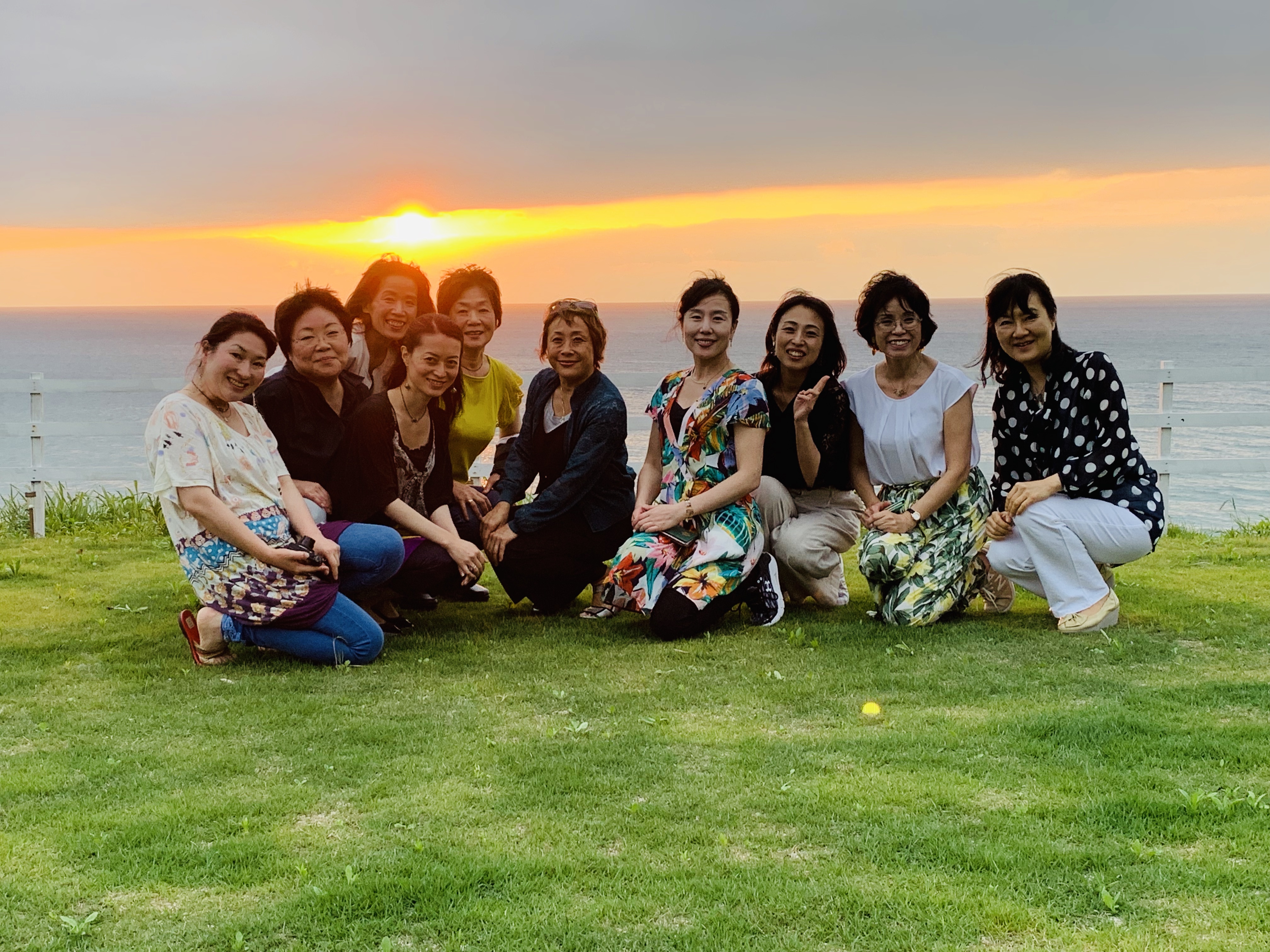 美しい夕陽をバックに集合写真。