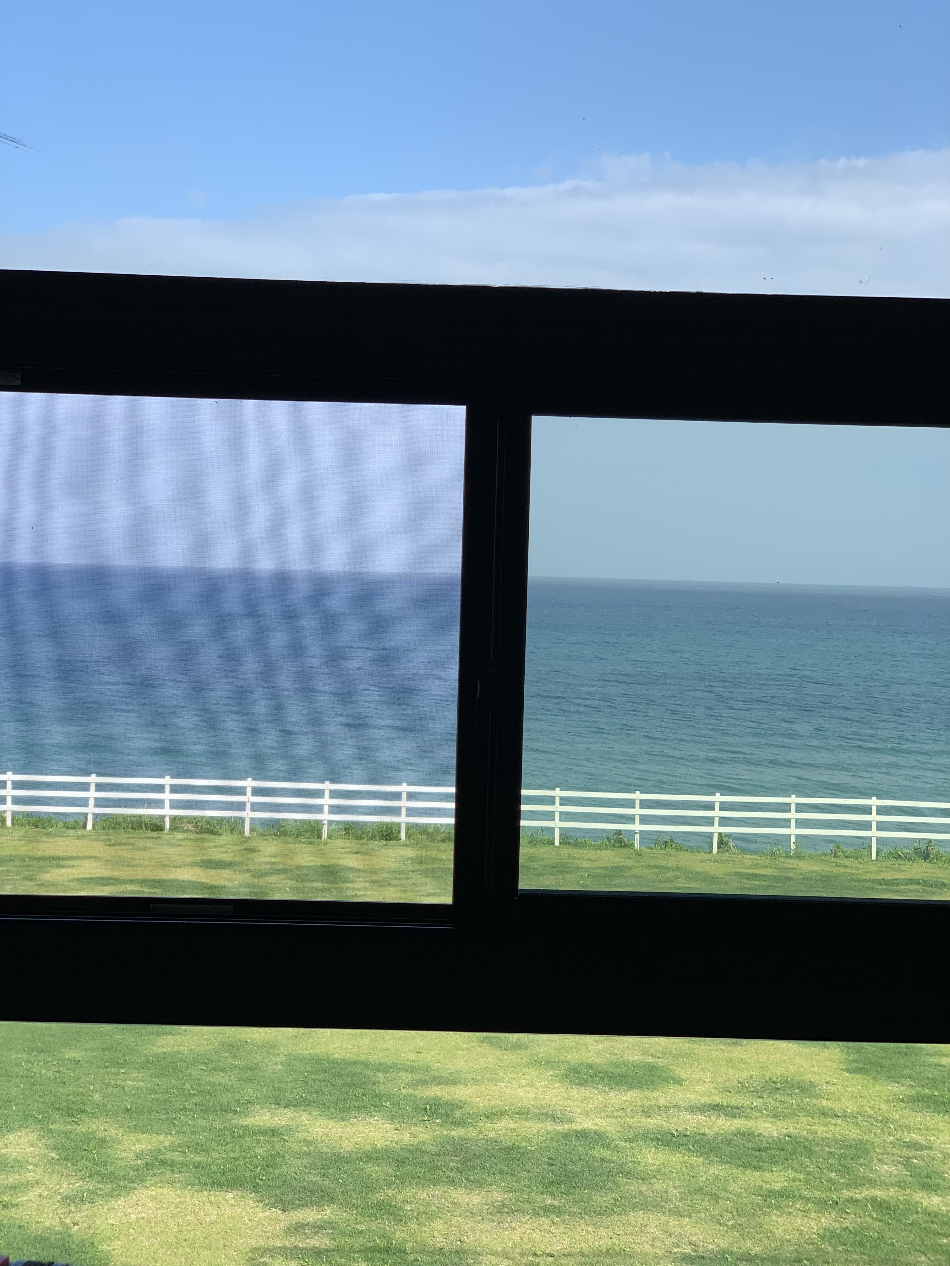 表側から見るとなんだろう、これ?という建物ですが、目の前に海が広がる絶景のビューのグランピングの宿でした。