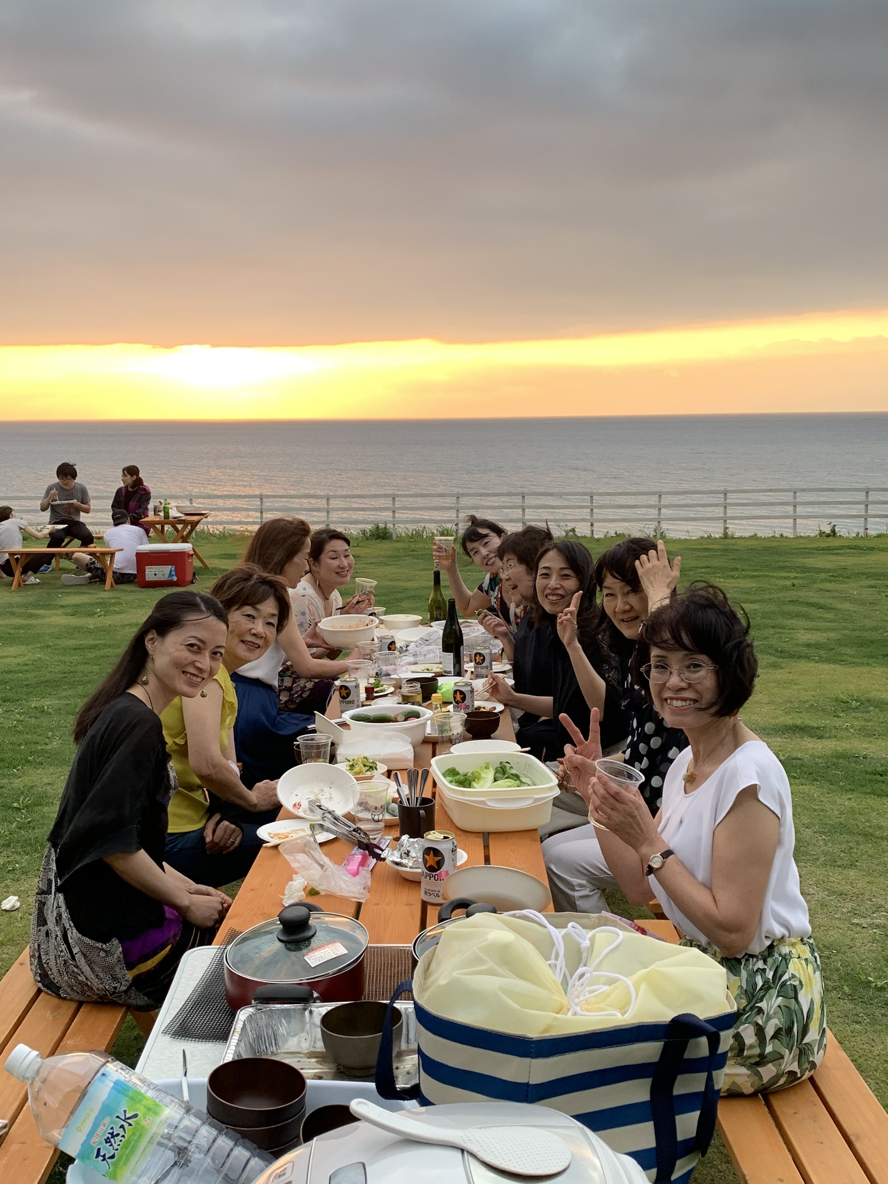 夕陽を見ながらの食事は最高!めちゃ気持ち良かったですね。お食事もお酒も美味しくて皆さん、大満足!