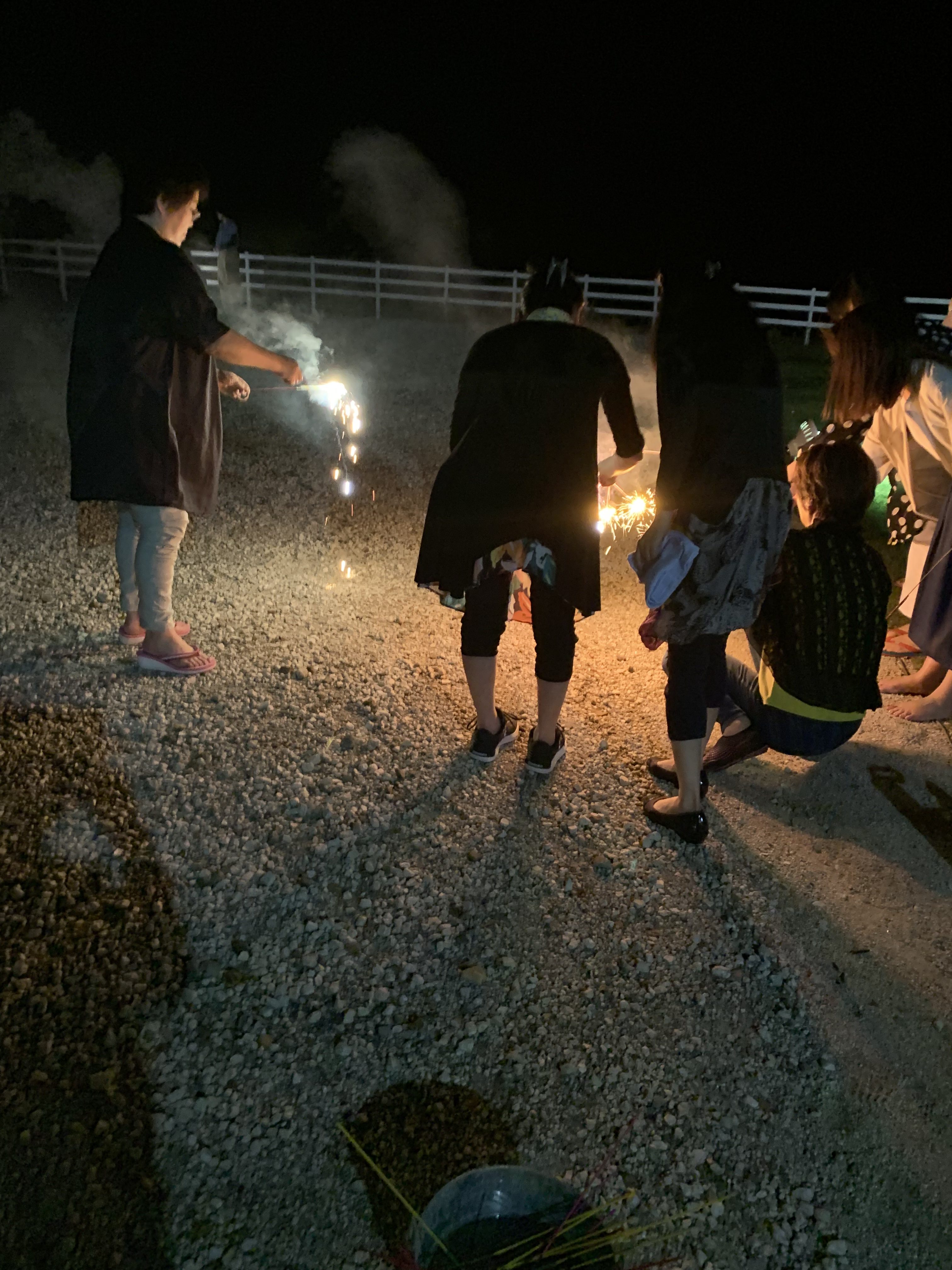 食事の後は出雲チームが用意してくれていた花火を童心にかえって無心でやる皆さん。
