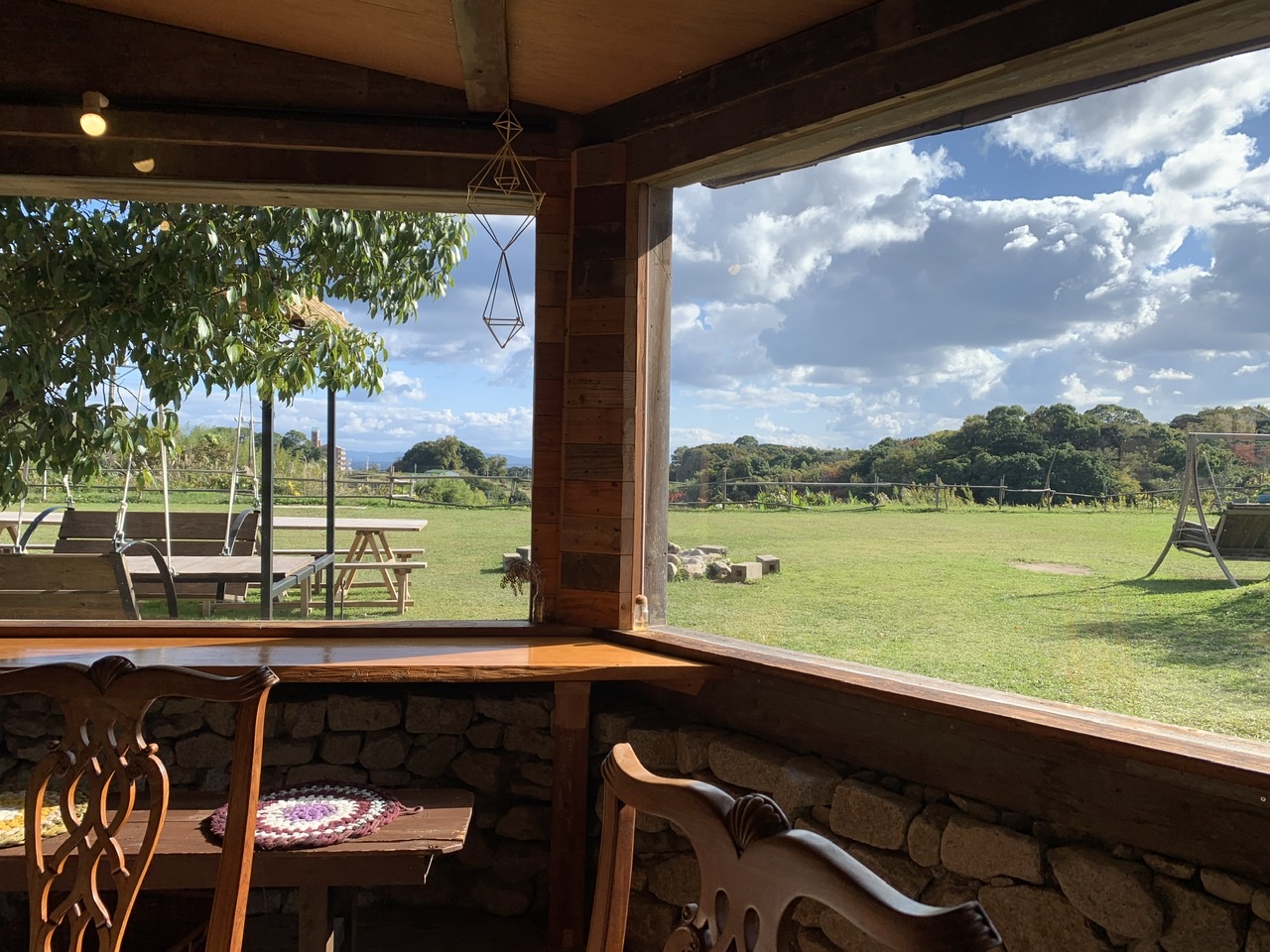 この日ランチに連れていって頂いたピザ屋さんは廃材を使って6年かけて作ったという建物。に見晴らしのいいお庭。キャンプ場とレストランが併設されています。