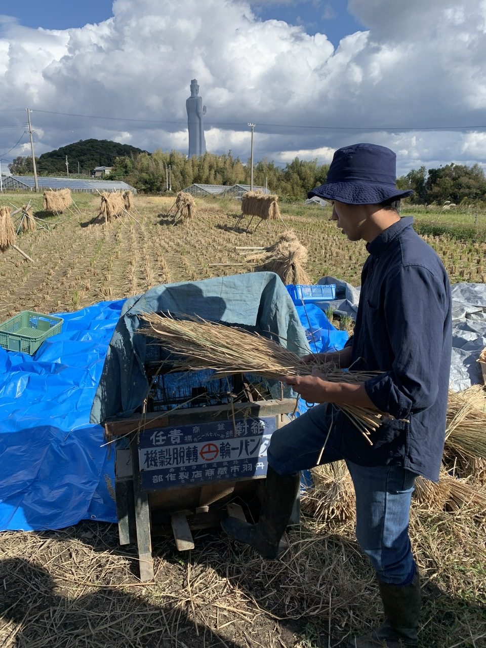 脱穀機で残ったものをみんなで手で落としていきます。晴れた空の下、車座になって作業していく中で色々なお話をお聞きしたり。その中でお聞きしていたお話。