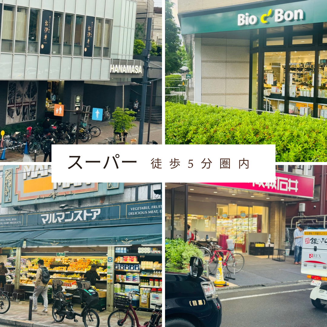 スーパーが徒歩5分内に4軒