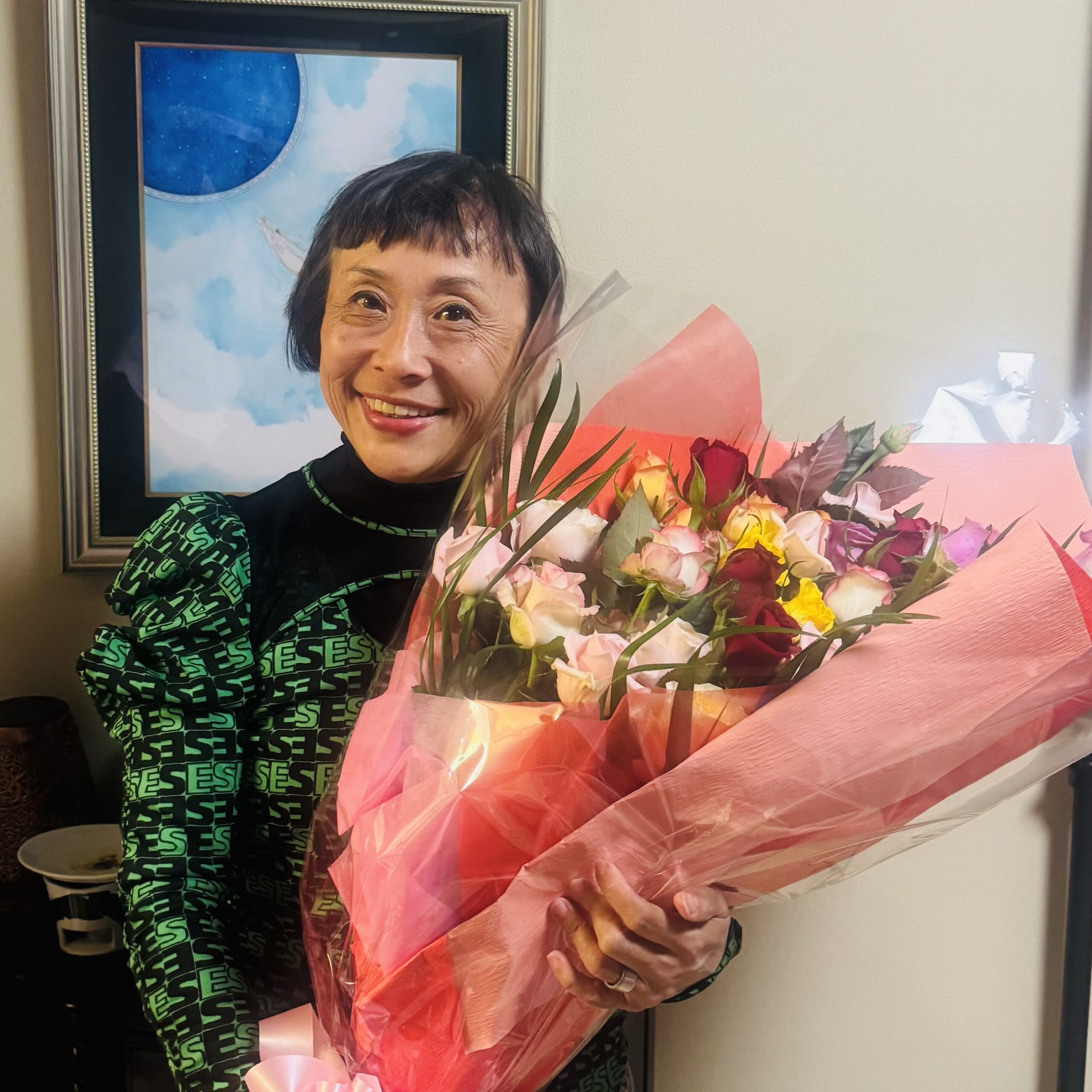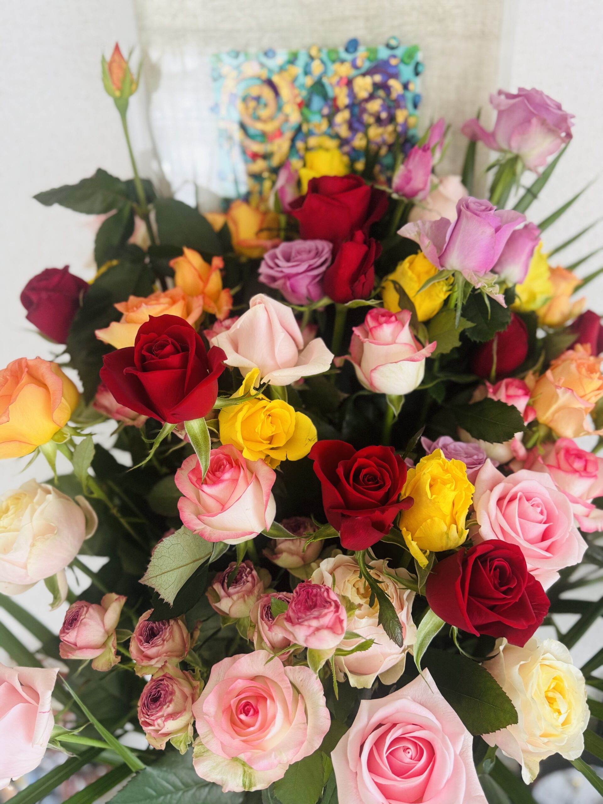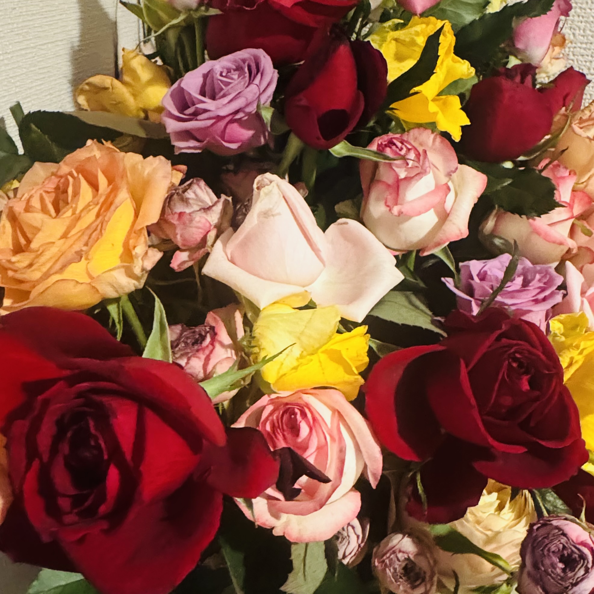 素晴らしい薔薇の花束を頂きました。