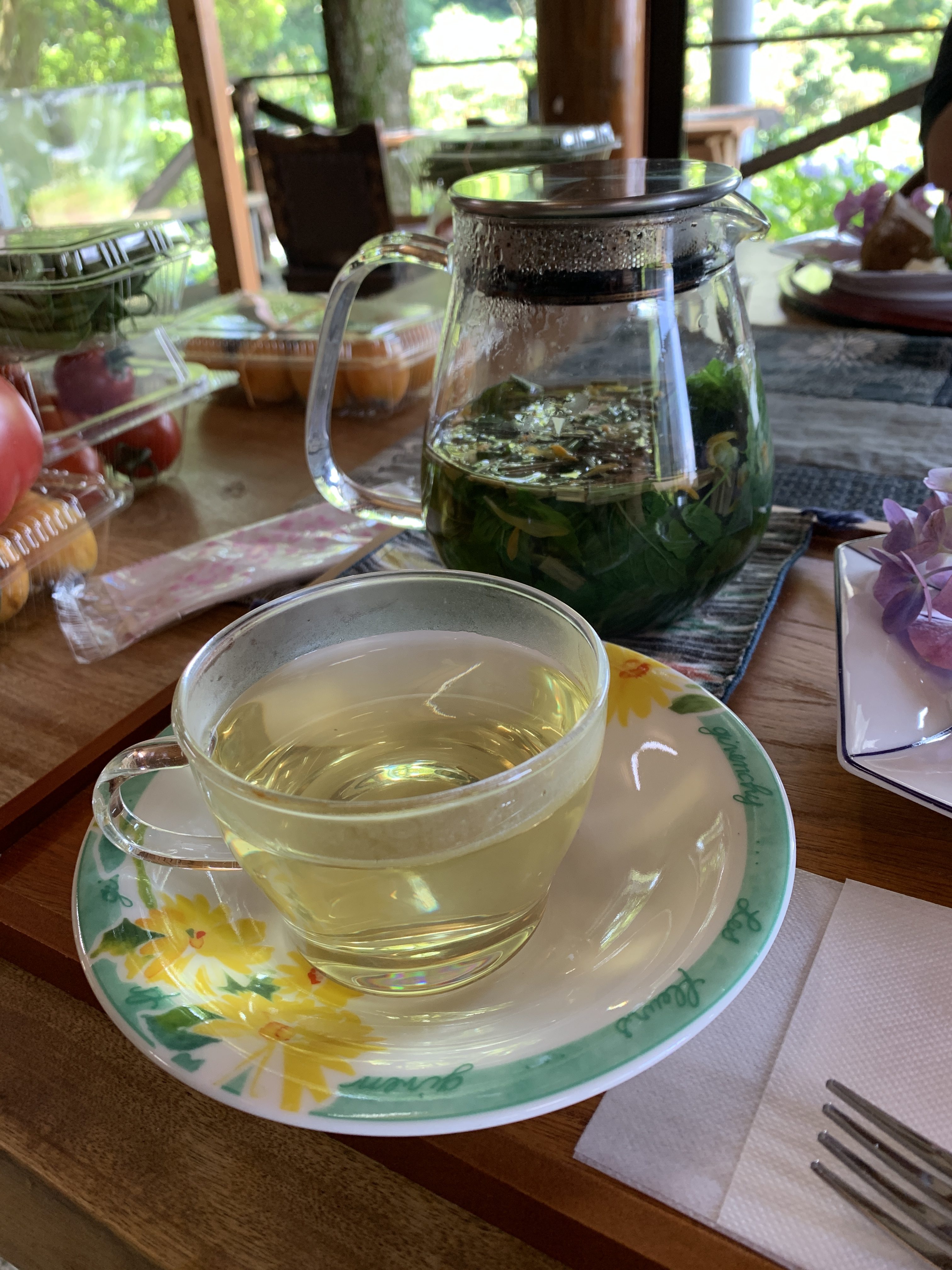 (庭で積んだハーブでハーブティー)
