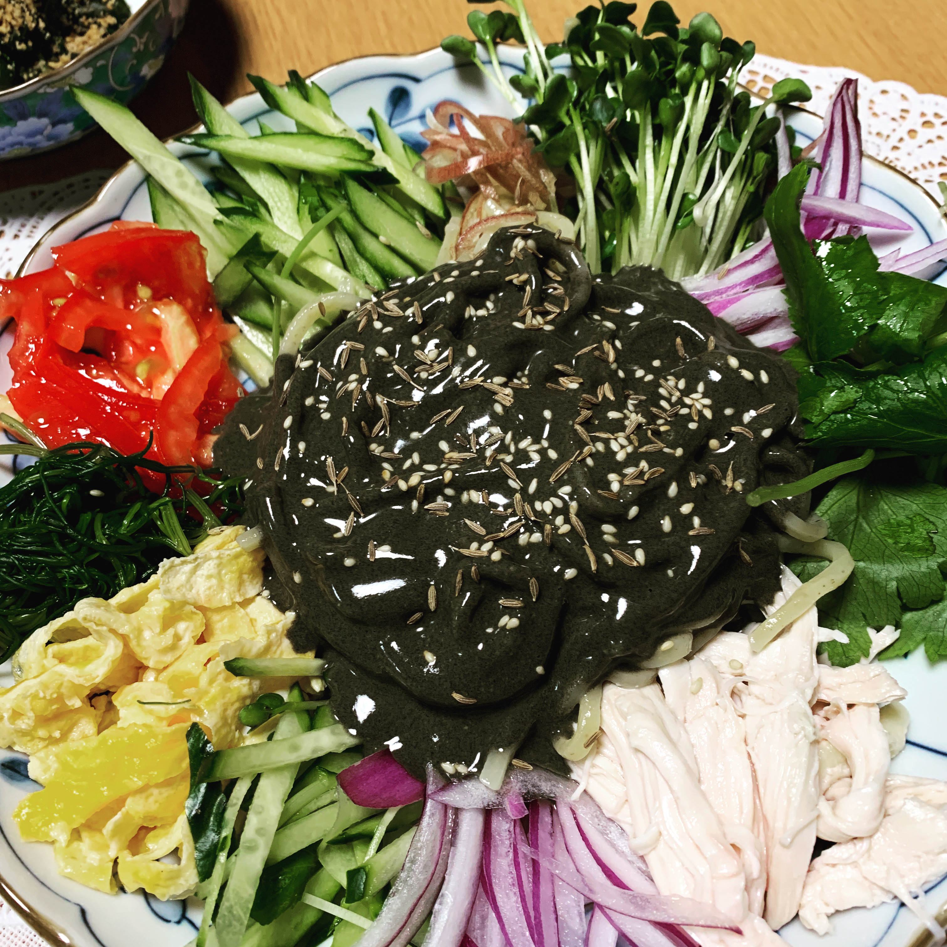 (今日の夕食、黒冷やし中華)